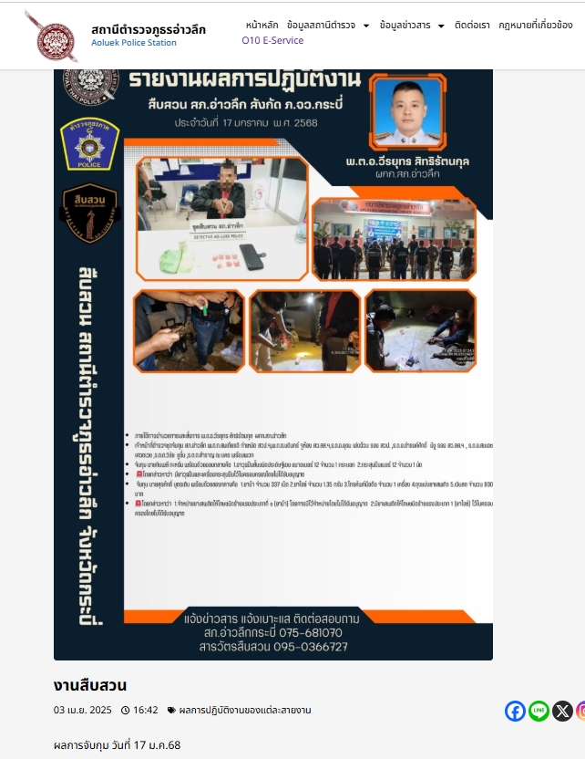 วันที่ 17 ม.ค.68.ชุดสืบสวน สภ.อ่าวลึก จับกุมผู้ต้องหา 1 ราย ของกลางยาบ้า 337 เม็ด