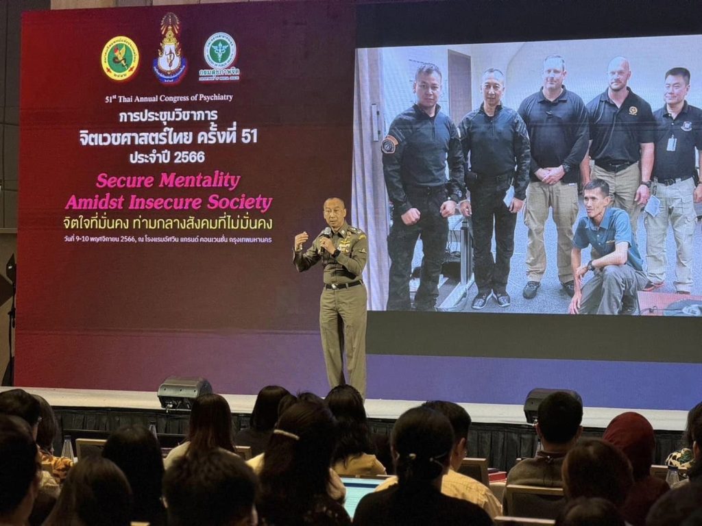 เมื่อวันที่ 10 พฤศจิกายน 2566 พ.ต.อ.ศิริวัฒน์ ดีพอ รองโฆษกสำนักงานตำรวจแห่งชาติ เปิดเผยว่า เมื่อวานนี้ (9 พฤศจิกายน ) พล.ต.อ.ต่อศักดิ์ สุขวิมล ผู้บัญชาการตำรวจแห่งชาติ (ผบ.ตร.) ร่วมให้เกียรติบรรยายในหัวข้อ ”ยุทธวิธีและการบริหารเหตุวิกฤต“ ให้กับบุคคลาการ สมาชิกจิตแพทย์, แพทย์ประจำบ้าน ในการประชุมวิชาการประจำปีจิตเวชศาสตร์ไทย ครั้งที่ 51 ประจำปี 2566 (51st Thai Annual Congress of Psychiatry,51st TACP) จัดโดยราชวิทยาลัยจิตแพทย์แห่งประเทศไทย,สมาคมจิตแพทย์แห่งประเทศไทย และกรมสุขภาพจิต กระทรวงสาธารณสุข ในระหว่างวันที่ 9-10 พฤศจิกายน 2566 ณ โรงแรมอัศวิน แกรนด์ คอนเวนชั่น กรุงเทพมหานคร