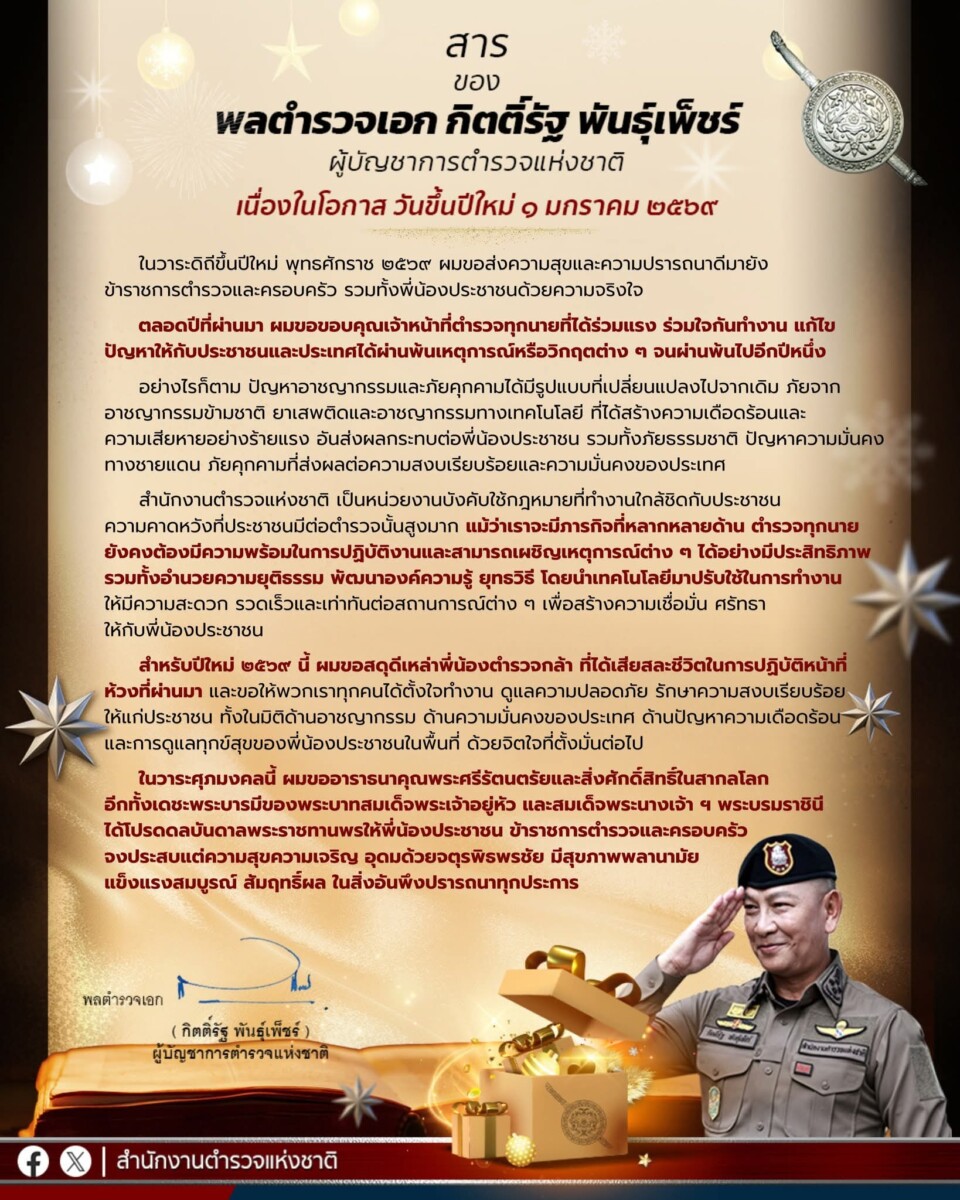 👮♂️❤️สาร ปีใหม่ จาก “พล.ต.อ. กิตติ์รัฐ พันธุ์เพ็ชร์ ผู้บัญชาการตำรวจแห่งชาติ” ถึงข้าราชการตำรวจและประชาชน